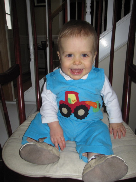 4. He knows about the stairs. I just walked downstairs with an overflowing laundry basket. William was on the stairs singing down to his brother, who was on his hands and knees at the foot of the staircase. Except that his hands were not on the floor. They were on the stair, and he was rocking forward.